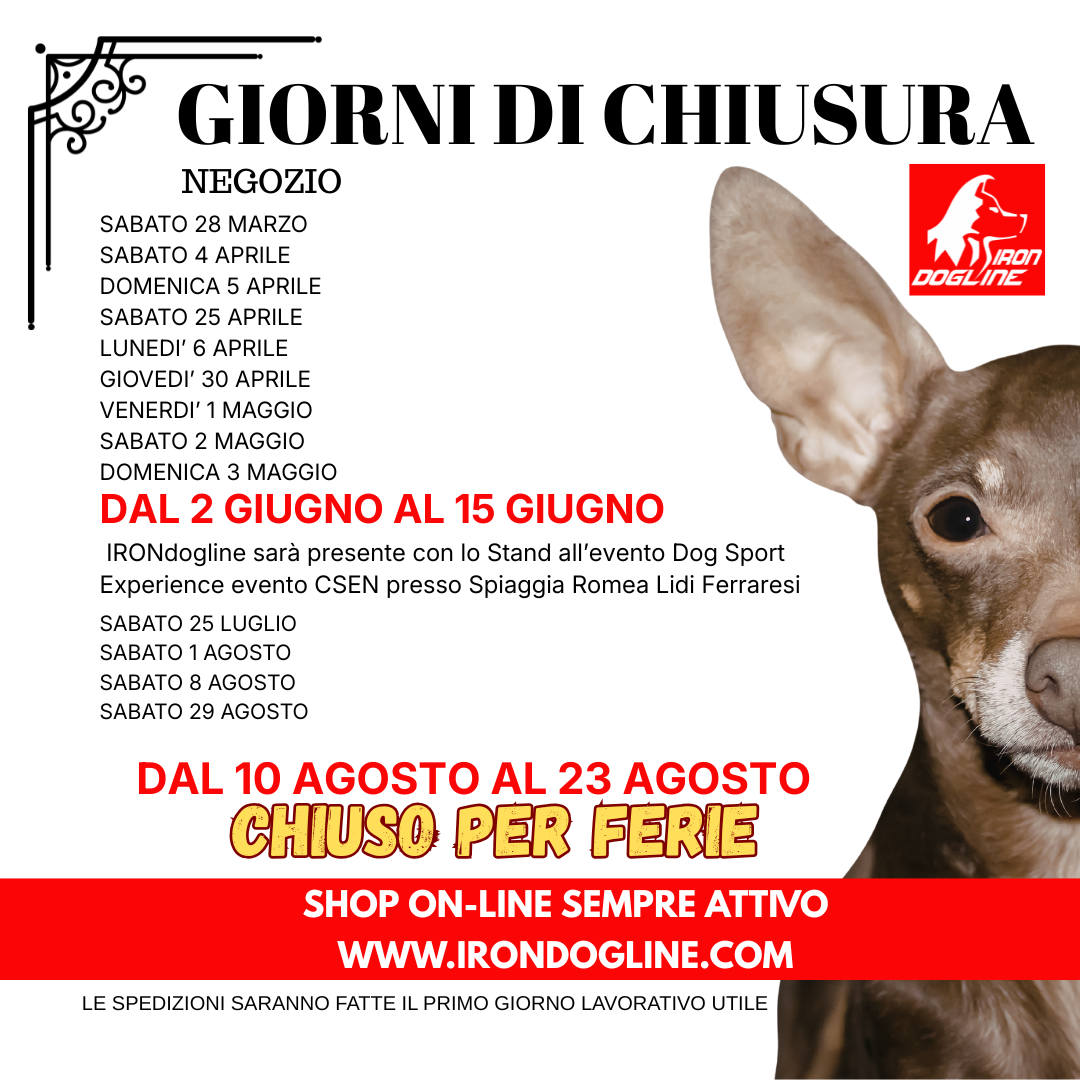 ATTENZIONE NELLA FOTO IN LOCANDINA TROVATE I GIORNI DI CHIUSURA DEL NEGOZIO IL SITO WEB SEMPRE ATTIVO E LE SPEDIZIONI VENGONO EVASE E SPEDITE I PRIMI GIORNI LAVORATIVI UTILI